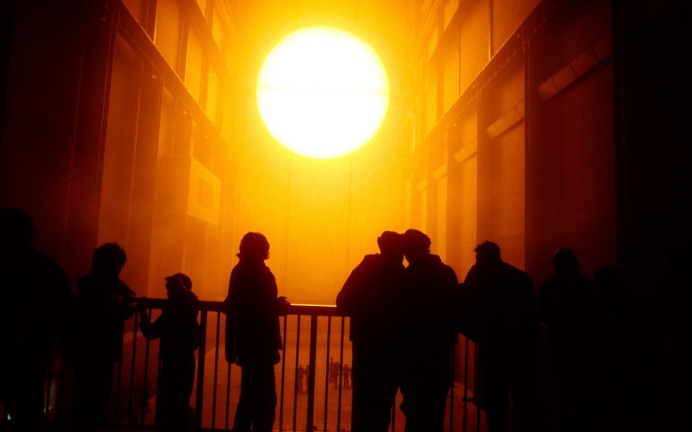 En 2003, atrajo a miles de visitantes al salón de turbinas de Tate Modern con su brumoso sol naranja brillante, y completó el 2018 al traer trozos de hielo glaciar fuera de la galería para fundirse junto al Támesis como un recordatorio del calentamiento global.
